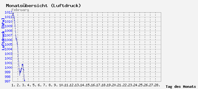 Schnitt: 1003.9 hPa; Min: 997.5 hPa; Max: 1012 hPa