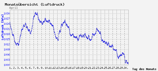 Schnitt: 1017.49 hPa; Min: 1000.7 hPa; Max: 1030.7 hPa