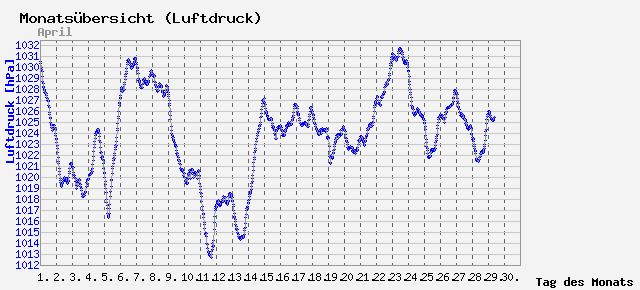 Schnitt: 1023.71 hPa; Min: 1012.7 hPa; Max: 1031.7 hPa