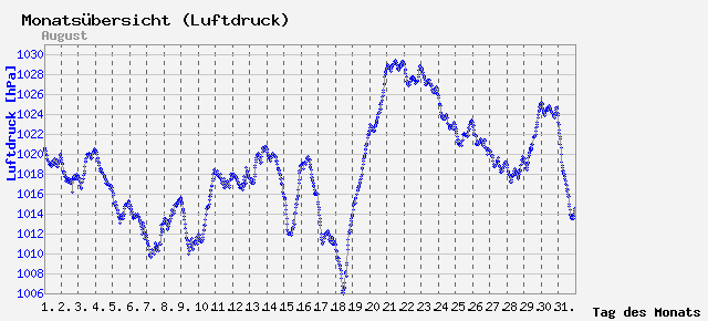 Schnitt: 1018.46 hPa; Min: 1006 hPa; Max: 1029.4 hPa