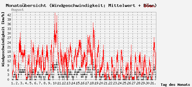Schnitt: 2.62 km/h; Min: 0 km/h; Max: 12.9 km/h