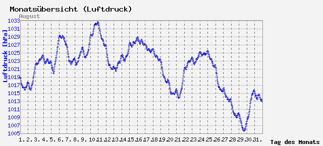 Schnitt: 1021.26 hPa; Min: 1005.6 hPa; Max: 1032.7 hPa
