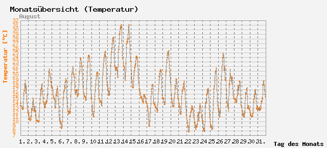 Schnitt: 16.324 °C; Min: 7.7 °C; Max: 31.1 °C