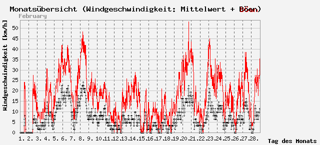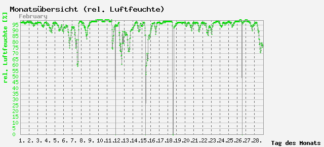 Die letzte Spalte zeigt die Qualität der Funkverbindung zu den Außensensoren an: "?" deutet Schwierigkeiten bei der Datenübertragung an. Die Daten wurden aber vollständig übertragen! "!" zeigt an, dass mindestens ein Datensatz nicht übertragen wurde und in die Mittelung nicht einbezogen werden konnte (D.h. von mind. einer halben Stunde fehlen alle Werte !).