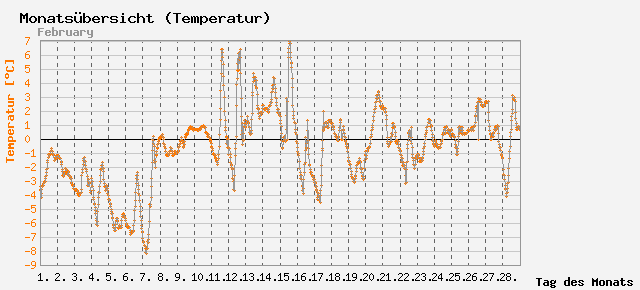 Schnitt: -0.571 °C; Min: -8.3 °C; Max: 7 °C