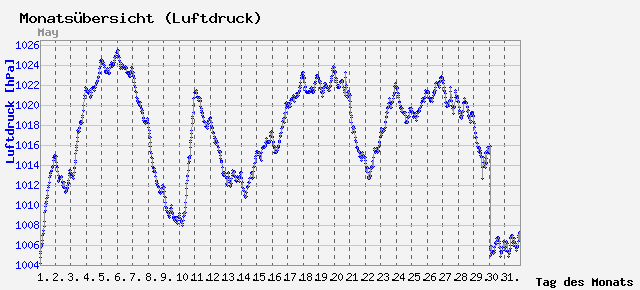 Schnitt: 1016.95 hPa; Min: 1004.1 hPa; Max: 1025.4 hPa