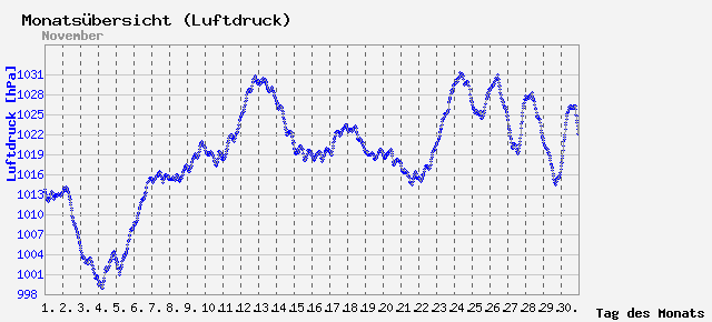 Schnitt: 1018.88 hPa; Min: 998.9 hPa; Max: 1031.2 hPa
