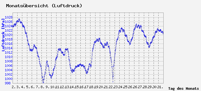 Schnitt: 1014.25 hPa; Min: 998.2 hPa; Max: 1027.2 hPa