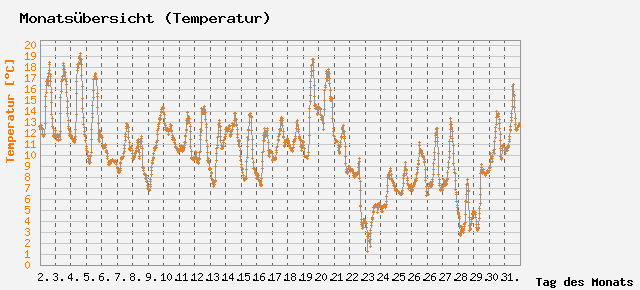 Schnitt: 10.311 °C; Min: 0.9 °C; Max: 19.3 °C