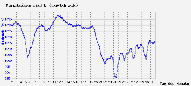 Schnitt: 1018.75 hPa; Min: 985.9 hPa; Max: 1038.2 hPa