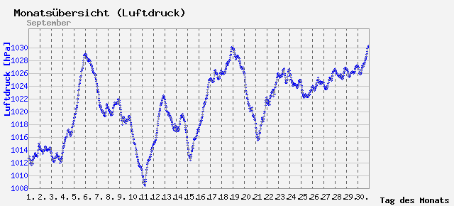 Schnitt: 1021.02 hPa; Min: 1008.4 hPa; Max: 1030.3 hPa